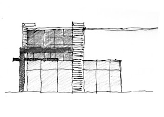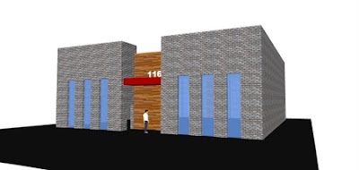 Scheme #2 is more like elegant and static, compared with scheme 1 above. The material contrast of the front facade expresses the composition of the building design; Cold and solid grey brick vs. warm wood plus red accent canopy.